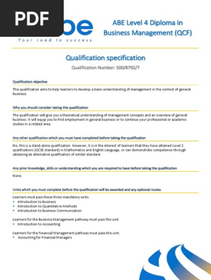 Abe Level 6 Extended Diploma In Business Management Qcf