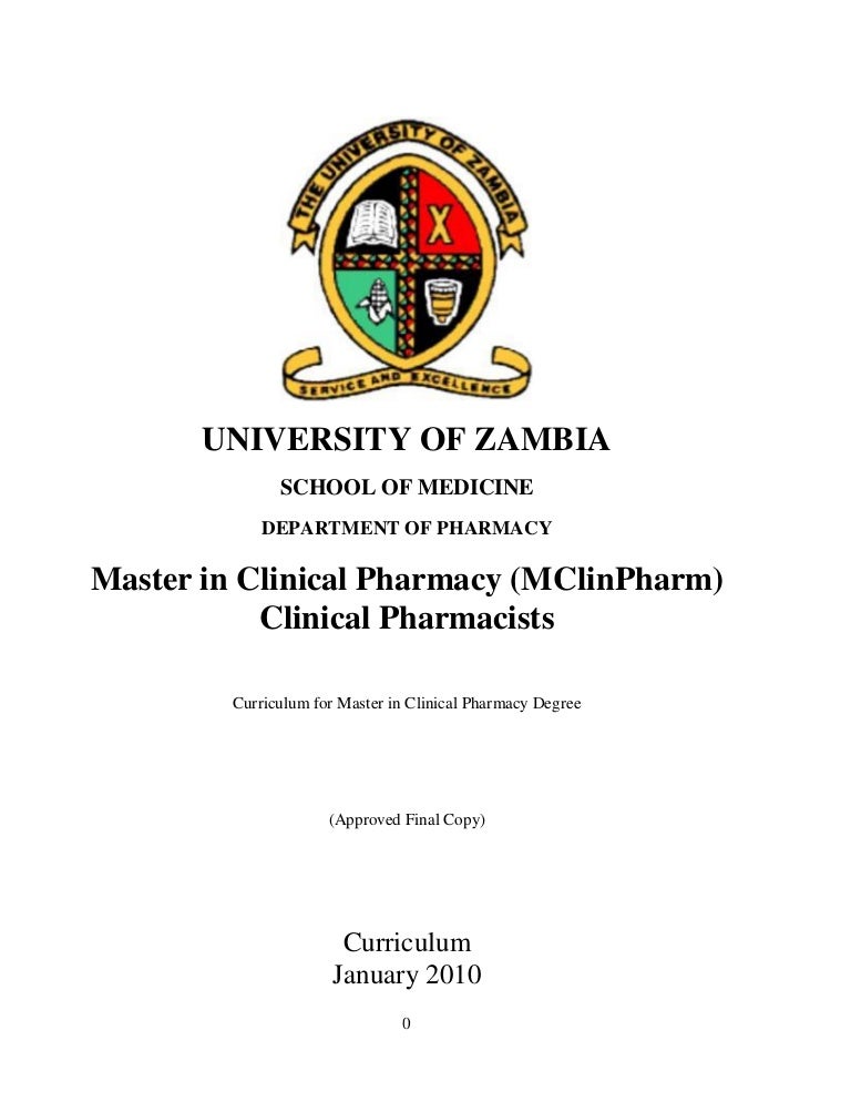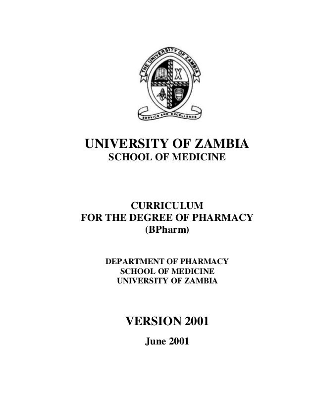 2001 Curriculum For Pharmacy Degree At Unza 2000