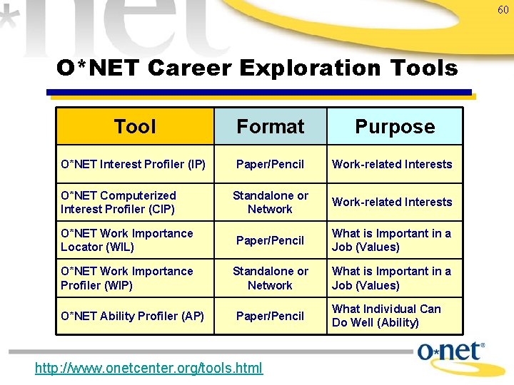 Occupational Information Network O Net And Career Development Iresearchnet